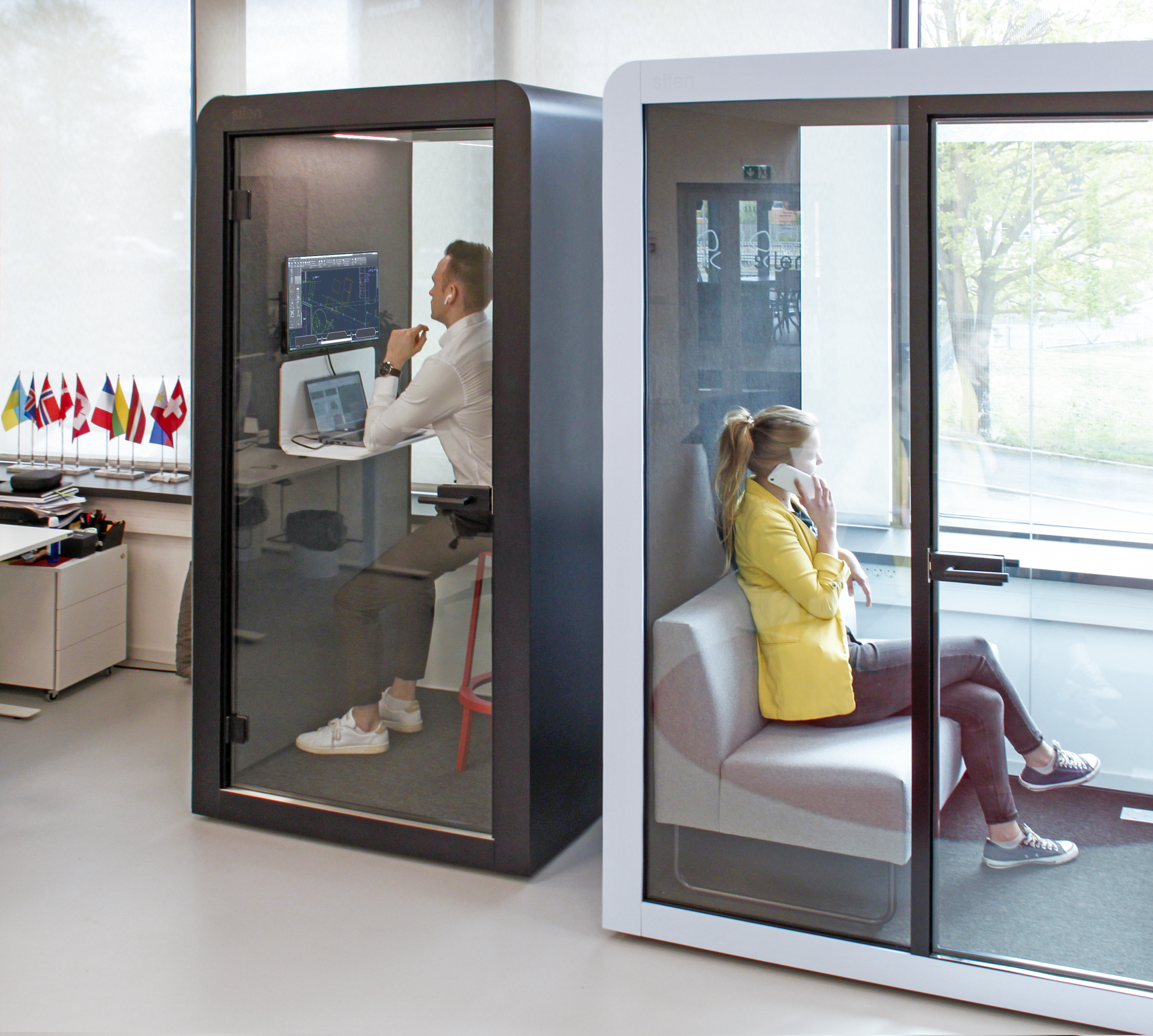 Silen Space office pods. The range has won awards for market-leading noise reduction, modular design, sustainability, and a wealth of customization options. Work works better here.